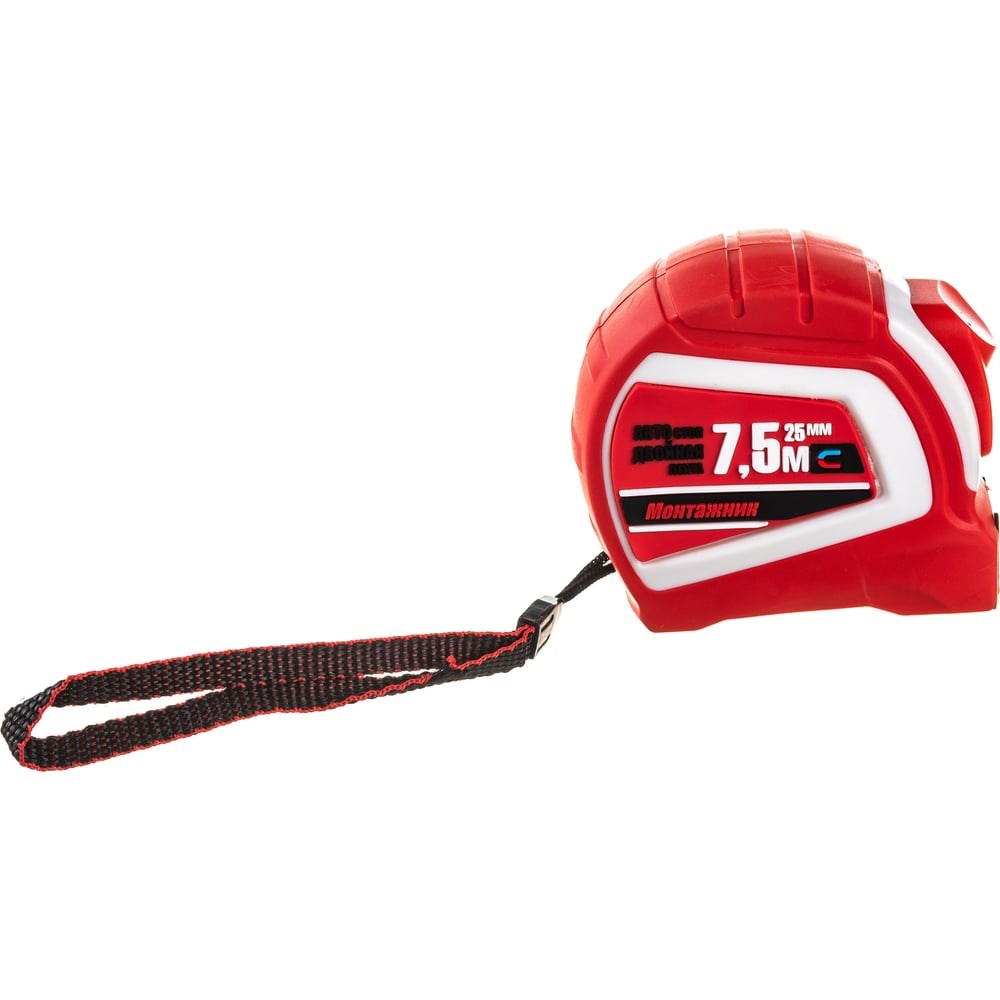 Рулетка с автостопом и магнитом Монтажник двусторонняя 7,5 м х 25 мм 603725 представляет собой удобный инструмент для работы в любой плоскости. Благодаря использованию двустороннего захвата и наличию разметки с обеих сторон. Удобный корпус хорошо ложится в ладонь и не скользит. Это ускоряет процесс измерений.