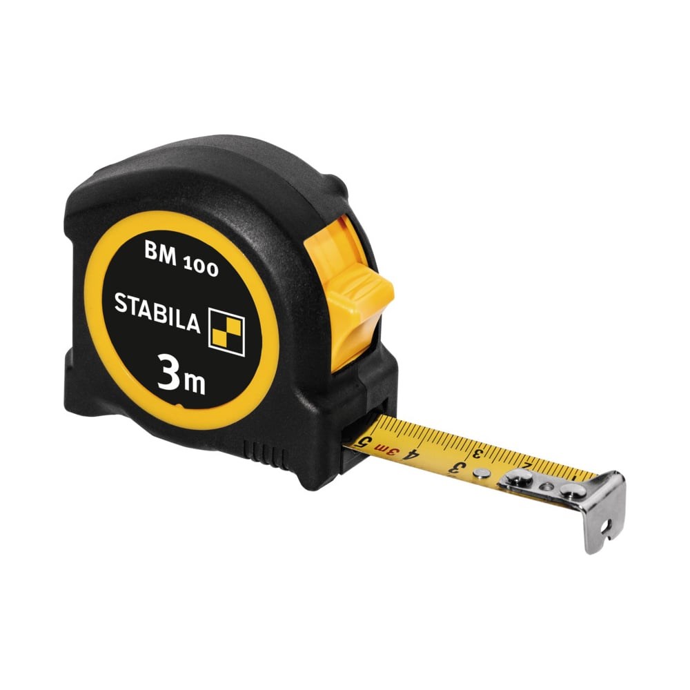 Рулетка STABILA BM 100 3 м 19570 — это незаменимый инструмент применяемый: Профессионалами в любых областях; Замерщиками; Работниками производства, которые делают измерения перед нарезкой материала; Домашними мастерами; Для бытовых измерений. Благодаря компактной конструкции и малому весу, данная модель отлично лежит в руке. Защитный кожух Softgrip обеспечивает удобный захват и защищает при падении от ударов. Точная шкала с легко считываемыми значениями облегчает нанесение разметки. Учитывая особенности работы на строительных площадках, рулетка дополнительно оснащена сильным тормозом и мощным втягивающим механизмом.