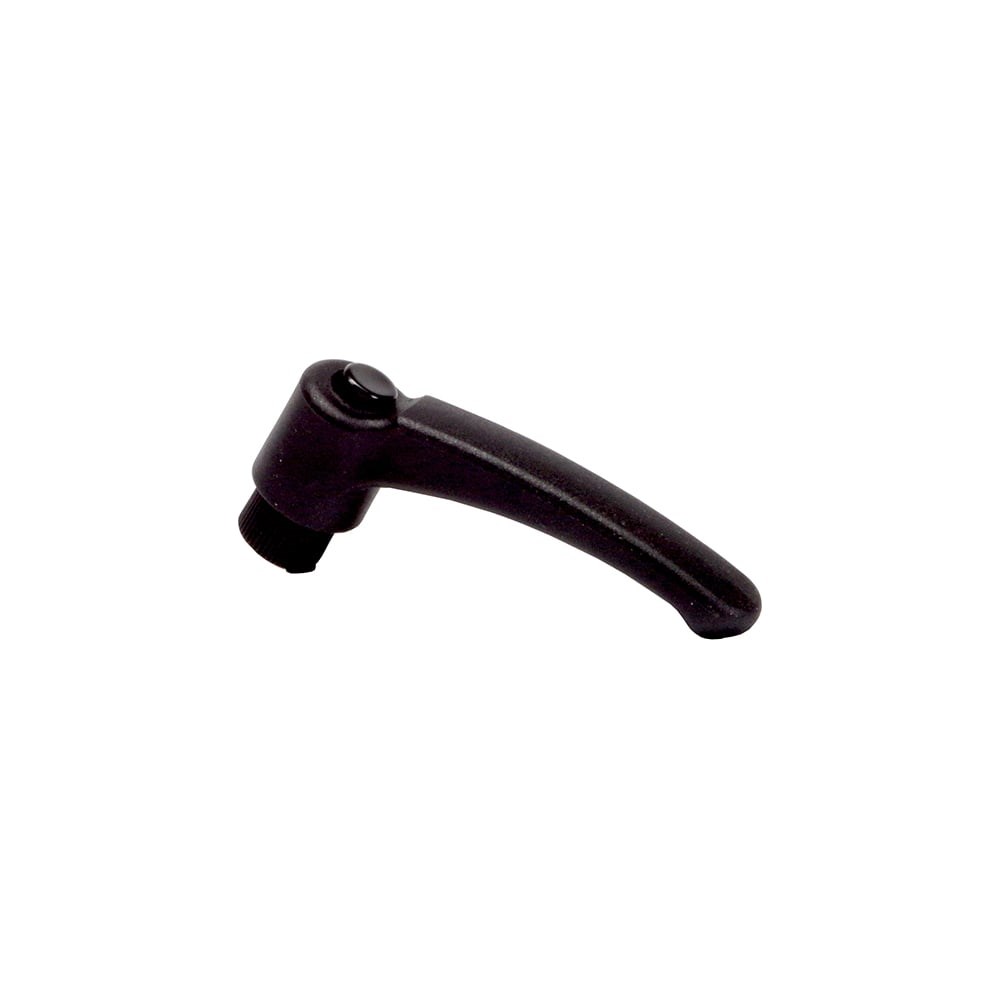 Рычаг из нейлона с внутренней резьбой используется на различном оборудовании для фиксации прижимов и других подвижных механизмов. Фиксатор изготовлен из ударопрочного матового нейлона, имеющего антифрикционную наружную структуру, обеспечивающую надежный прочный хват и эффективное поглощение света без бликов. Рычаг оснащен резьбовым стержнем из оцинкованной стали.