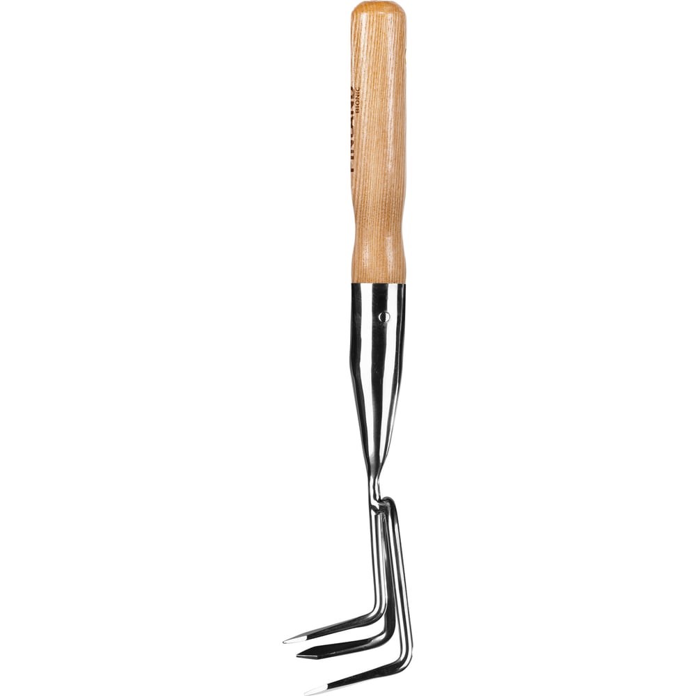 Рыхлитель 3 зуба с длинной рукояткой Центроинструмент FINLAND 1849 – садовый инвентарь премиум-класса. Рабочая часть выполнена из нержавеющей стали и крепко зафиксирована на деревянной рукоятке. Рукоятка защищена лессирующим покрытием. Особенность – удлиненная тулейка. Благодаря ей, инструмент получает дополнительную длину – проще работать с широкими грядками и клумбами. Рабочая часть очень прочная – с качественным сварным соединением, имеет увеличенную толщину металла. Именно поэтому инструмент очень увесистый. Уход необыкновенно лёгкий – достаточно помыть чистой водой и насухо вытереть тканью.