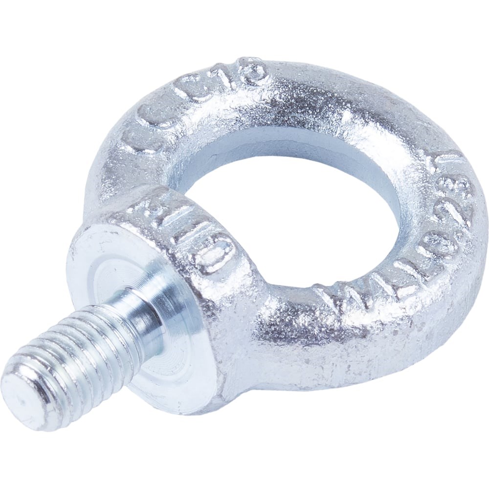 Рым-болт DIN 580 оцинкованный применяют для подъёма грузов в такелажных работах совместно с грузоподъемным такелажем. В строительных работах он служит для формирования узла, через который осуществляется натяжение, фиксация и другие строительные операции.