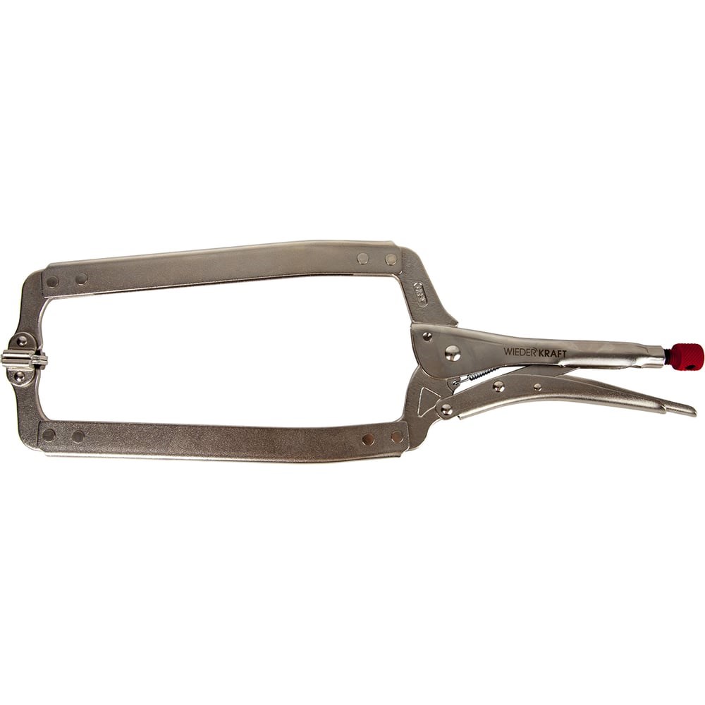 С-образный зажим WIEDERKRAFT WDK-65141 предназначен для надежной фиксации деталей при сварке, сборке и слесарных работах. Прочная конструкция из легированной стали с хромированным покрытием устойчива к износу и коррозии. Зажим оснащен регулировочным винтом с технологическим отверстием, что обеспечивает удобную и точную настройку усилия.Характеристики: • Длина: 455 мм • Рабочий ход: 208 мм • Высота захвата: 90 мм • Глубина захвата: 240 мм