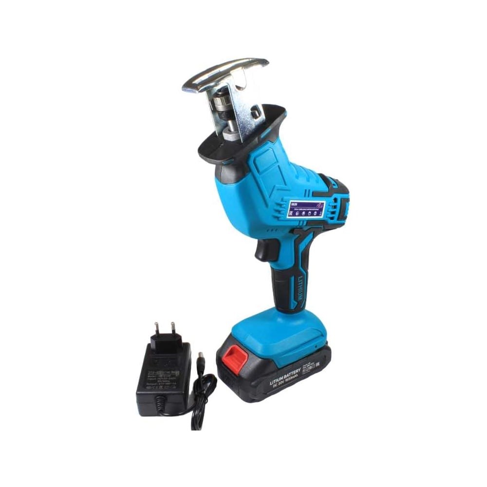 Электропила сабельная (ножовка), идеально подходит для распила дерева и веток, пластика или металла, кабеля. В комплект входит литиевый аккумулятор мощностью в 1500 мАч, который гарантирует порядка 40 минут интенсивной работы. Сабельная садовая электропила имеет широкий спектр использования, как для работы на участке, в доме, в саду или в огороде. Удобная пила с острыми пильными полотнами и противоскользящей ручкой заменит лобзик. Пила также подойдет для туристического отдыха на природе, для походных мероприятий. Электрическая пила удобна в использовании и проста в обслуживании. Простая и облегченная беспроводная конструкция позволяет свободно перемещаться во время работы. Сабельная пила легко справится с любой задачей, которая требуется для распила. Корпус электроинструмента достаточно прочный. Аккумулятор после полной разрядки быстро заряжается.