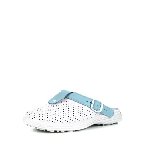 Сабо женские нат.кожа Комфорт ПВХ, белый/голубой