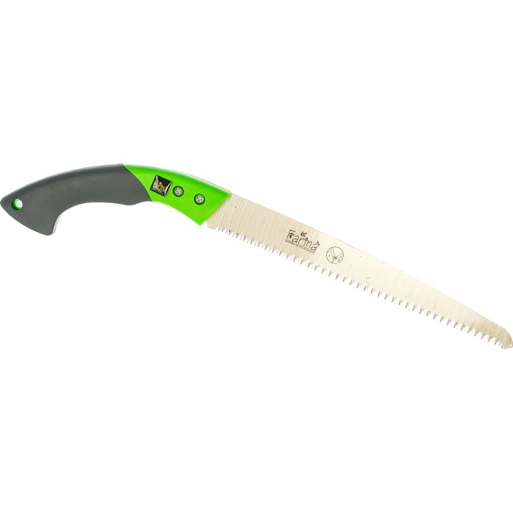 Садовая ножовка с ножнами, 300 мм, обрезиненная ручка ФАРИНА 93221 тов-135692 изготовлена из высококачественной стали, зубья с трехсторонней заточкой закалены для повышения прочности. Эргономичная рукоять выполнена из двух материалов, благодаря чему рука не скользит во время работы. Ножны из пластика и имеют подвес для удобного хранения инструмента.
