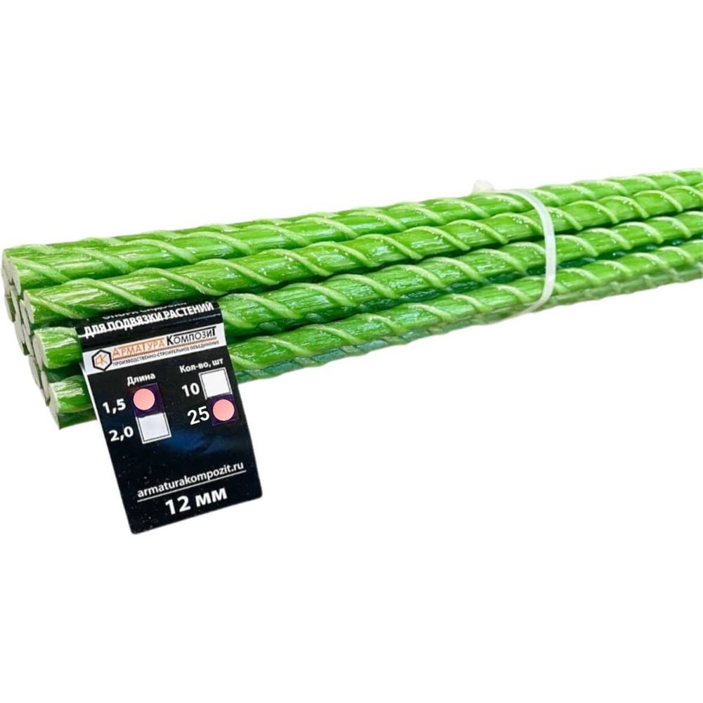 Набор колышков из стеклопластиковой арматуры 25 шт. по 1,5 м для подвязки садовых и комнатных растений. Внешний диаметр с учетом навивки с двух сторон 12 мм. Диаметр по стволу - 10 мм. Опора для растений в саду, защищает стебли растений от поломки при сильном ветре или от тяжести плодов С их помощью укрепляют травянистые виды культур, у которых образуются крупные цветки и плоды. Согласно правилам комфортного роста и развития растений на каждый саженец или выращиваемый кустик устанавливают индивидуальный колышек. Чтобы правильно привязать саженец любой культуры, нужно использовать веревку либо канатик. Ею привязывают главный стебель к колышку, концы скрещивают либо завязывают восьмеркой.
