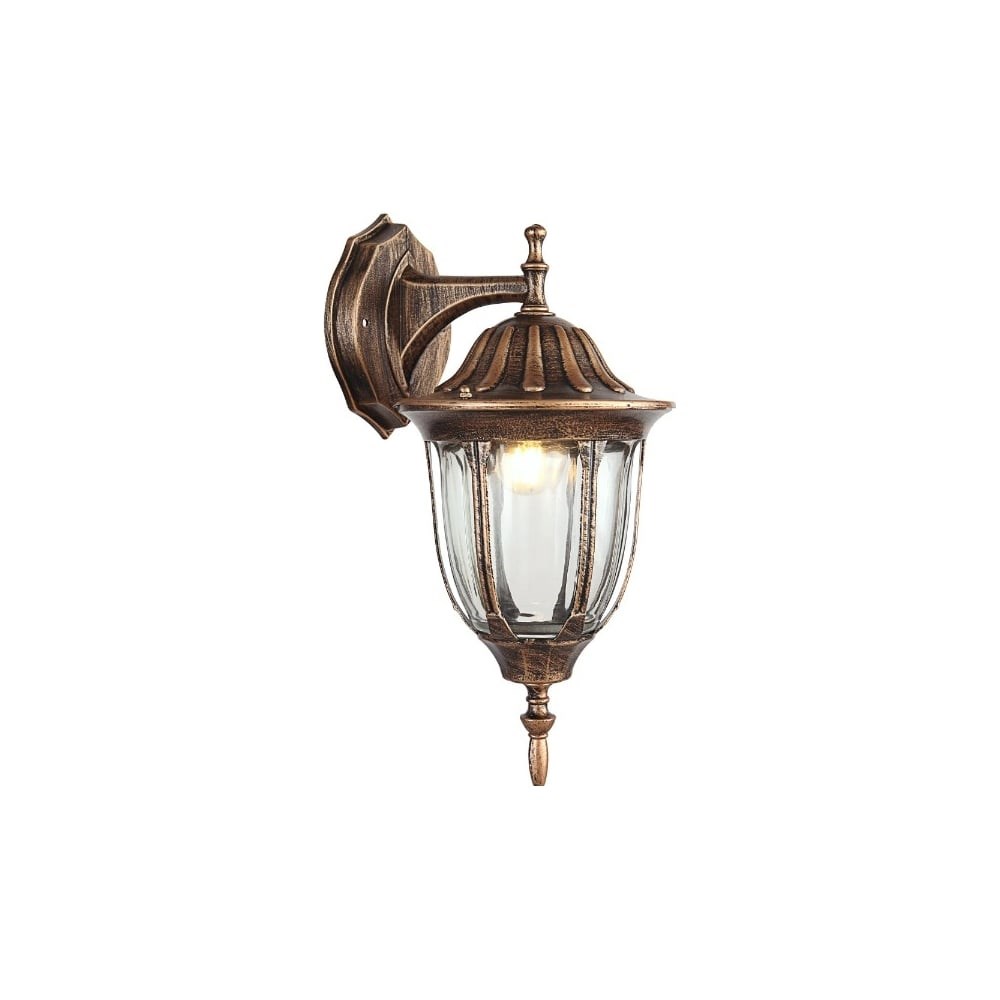 Светильник садово-парковый De Fran, Е27 60Вт IP44 (M) черненное золото, EL-342DN, серии Валенсия (настенный), выполнен в стиле модерн. Предназначен для освещения фасадов зданий, уличных кафе, придомовых территорий, террас, а также может быть использован для интерьерного освещения. Корпус светильника, изготовленный из литьевого сплава алюминия, долговечен и устойчив к воздействию неблагоприятных факторов окружающей среды. Декоративное фактурное стекло рассеивая свет обеспечивает комфортное для глаз освещение.