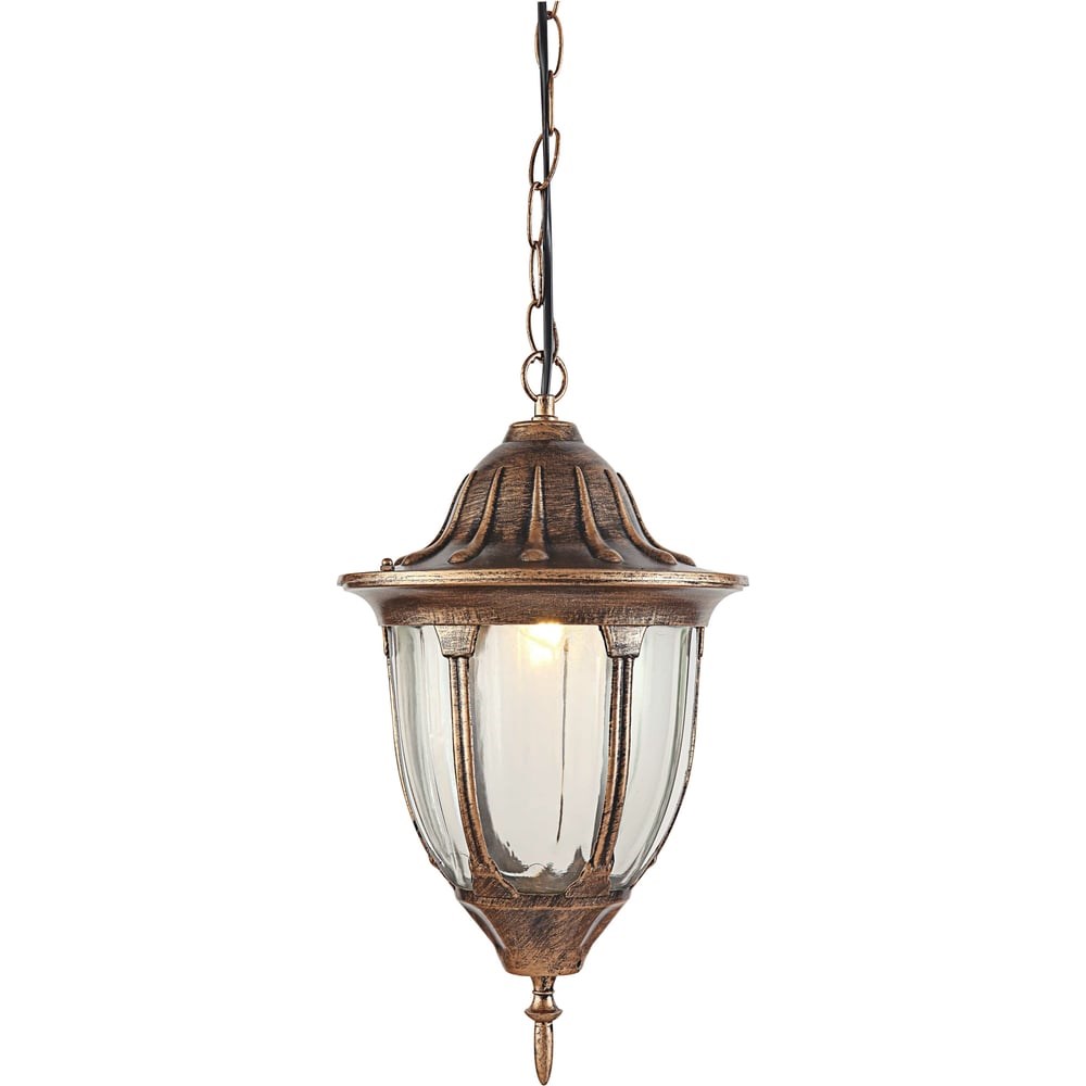 Садово-парковый светильник De Fran Е27 60Вт IP44 (S) черненое золото, EL343HG серии Валенсия (подвесной) , выполненный в стиле модерн, предназначен для освещения фасадов зданий, уличных кафе, придомовых территорий, террас, а также может быть использован для интерьерного освещения. Корпус светильника, изготовленный из литьевого сплава алюминия, долговечен и устойчив к воздействию неблагоприятных факторов окружающей среды. Декоративное фактурное стекло рассеивая свет обеспечивает комфортное для глаз освещение.