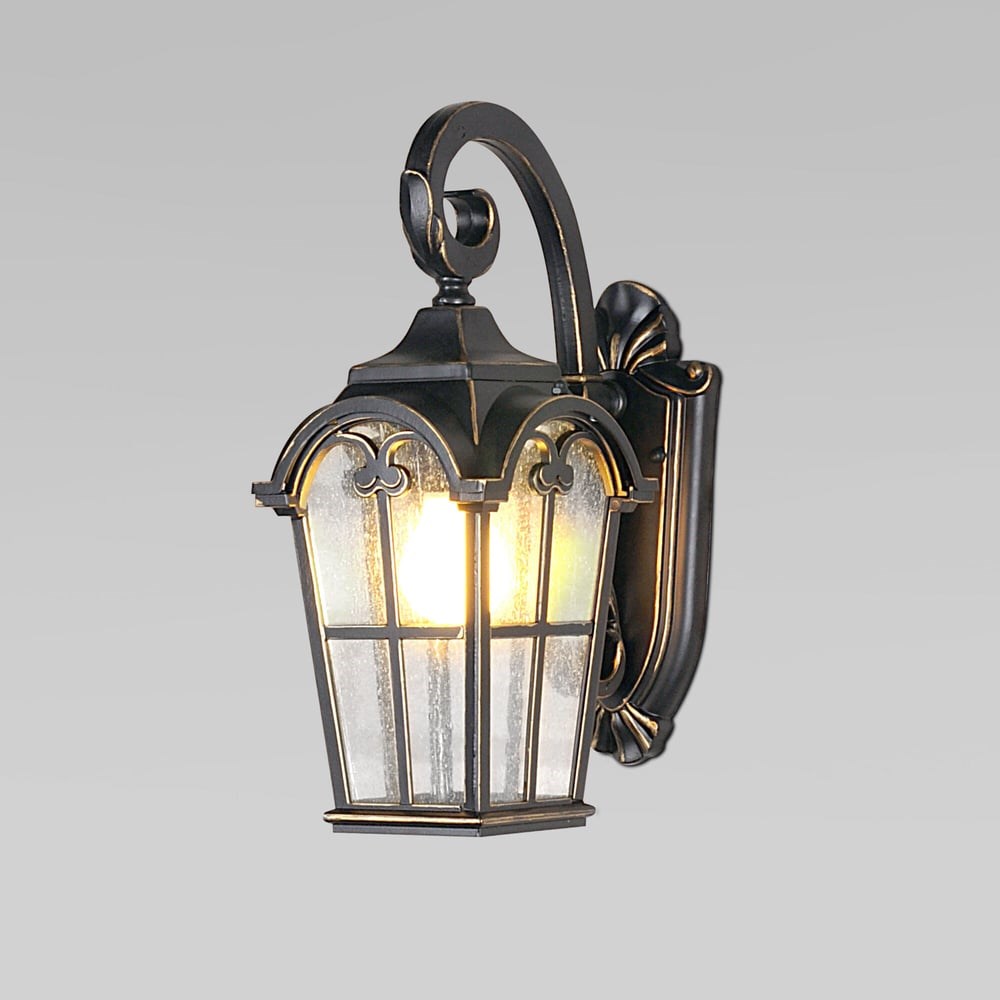 Уличный настенный светильник Mira D черное золото IP33 предназначен для создания дополнительного освещения, а также декоративной подсветки снаружи и внутри помещений. Благодаря стеклянному плафону создает мягкое равномерное свечение. В качестве источника света используются сменные лампы с цоколем E27. Патрон рассчитан на максимальную мощность ламп накаливания 60 Вт.Корпус светильника выполнен из высококачественного и прочного металла с надежным покрытием. Уличный светильник Mira D черное золото IP33 легко монтируется при помощи крепежной планки, которая обеспечивает надежную фиксацию светильника на стене.