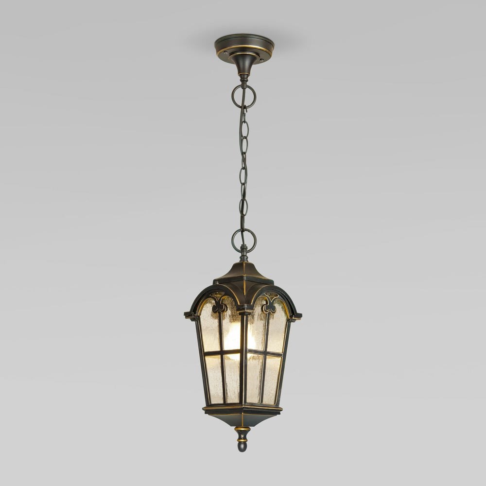 Уличный подвесной светильник Mira H черное золото предназначен для создания дополнительного освещения, а также декоративной подсветки снаружи помещений. Благодаря стеклянному плафону создает мягкое равномерное свечение. В качестве источника света используются сменные лампы с цоколем E27. Патрон рассчитан на максимальную мощность ламп накаливания 60 Вт.Корпус светильника выполнен из высококачественного и прочного металла с надежным покрытием. Уличный подвесной светильник Mira H черное золото легко монтируется при помощи крепежной планки, которая обеспечивает надежную фиксацию светильника.