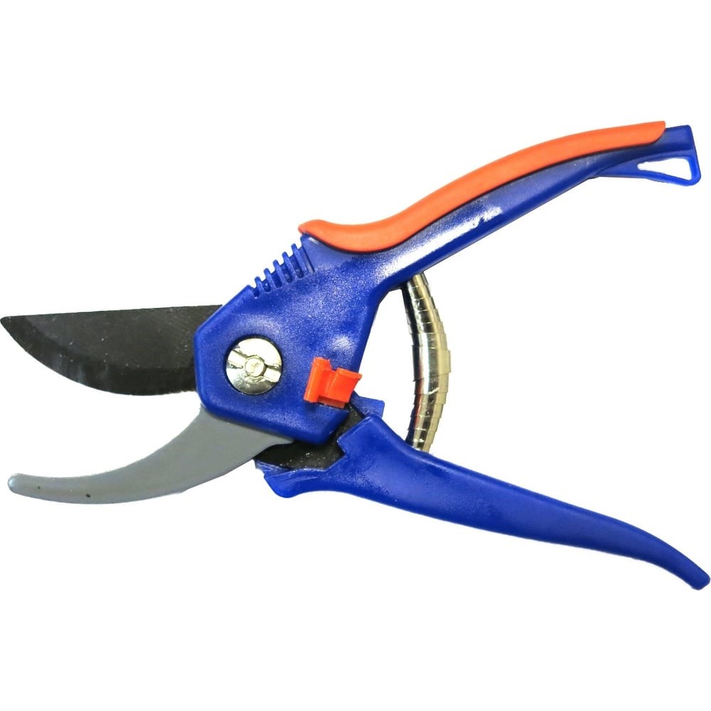 Садовый секатор Репка Барсук 50107 15139 используется для обрезания стеблей и небольших ветвей растений. Для безопасного хранения и транспортировки предусмотрен фиксатор для блокировки лезвий. Отверстие в рукоятке позволяет компактно хранить инструмент в подвешенном состоянии. Изогнутая форма лезвий обеспечивает полный захват срезаемого растения, что упрощает работу.
