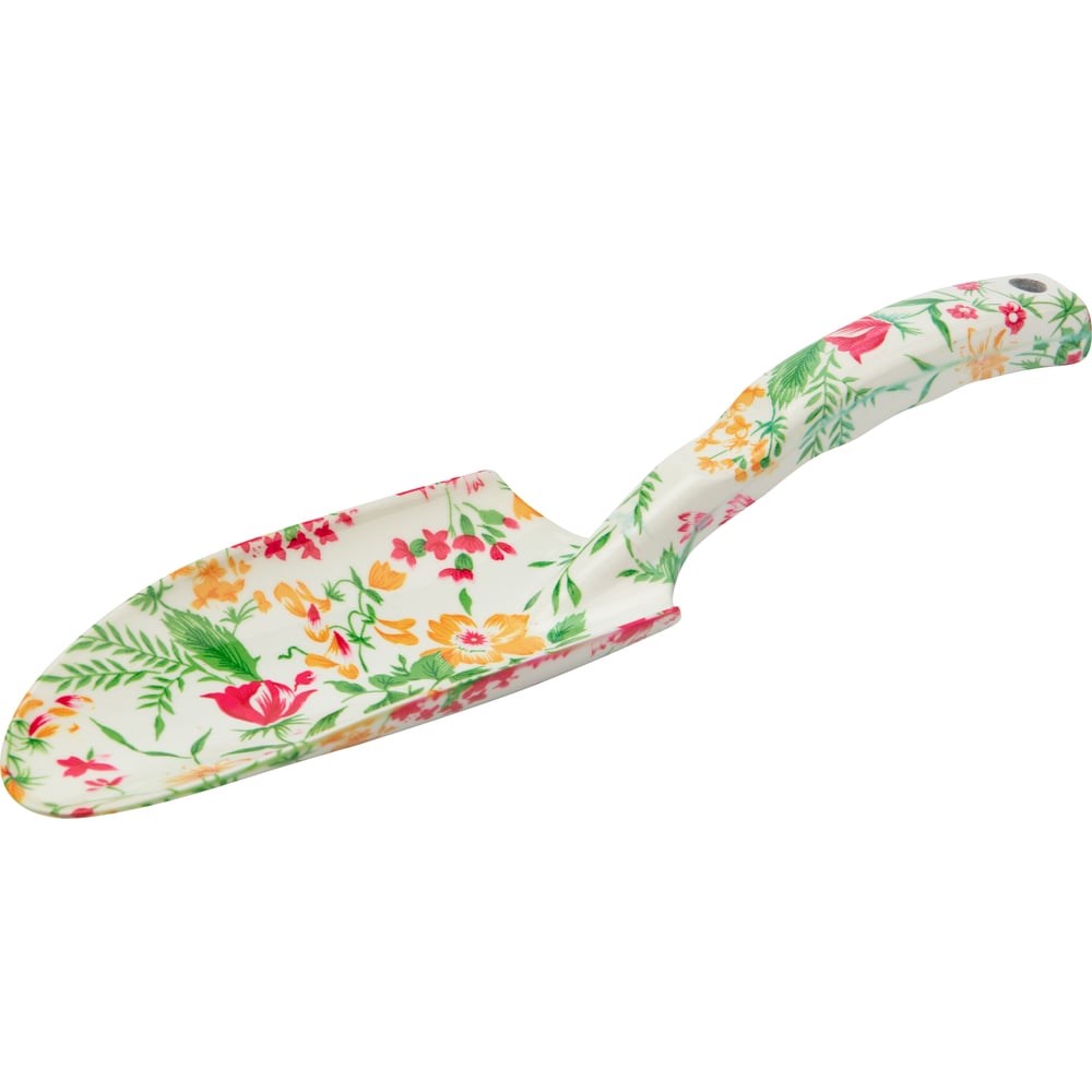 Садовый стальной совок с цветочным рисунком Четыре сезона 64-0011 отлично подходит для ручной работы в саду и огороде. Инструмент выполнен из углеродистой стали и не деформируется с твердыми предметами, такими как камни. Высококачественное лакокрасочное покрытие позволяет защитить инструмент от сколов и царапин. По окончании использования рабочую часть инструмента необходимо очистить от остатков грунта.