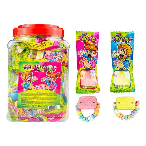 Состав: сахар, глюкозный сироп, патока, регулятор кислотности (лимонная кислота), ароматизатор (тутти-фрутти), красители Е102, Е110, Е129, Е133. Не рекомендовано детям до 3 лет. Без ГМО. Пищевая ценность (средние значения) на 100 г продукта: белки – 0 г, жиры – 0 г, углеводы – 93,5 г. Энергетическая ценность (калорийность) на 100 г продукта: 1566 кДж / 374 ккал. Условия хранения: хранить в сухом и прохладном месте при температуре от 1 до 25 °С и относительной влажности воздуха не более 75%. Избегать попадания прямых солнечных лучей.