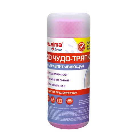 Салфетка протирочная 3D-СУПЕРВПИТЫВАЮЩАЯ PVA-замша 43x32 см, в тубе, розовая, LAIMA HOME, 609973