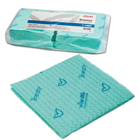 Салфетка VILEDA "Бризи", КОМПЛЕКТ 25 шт., объемное микроволокно, зеленая, 35х35 см, 161619