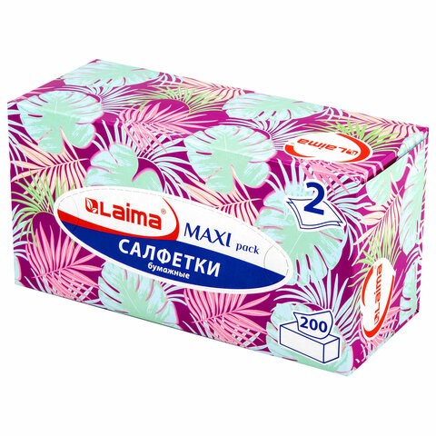 Салфетки косметические 200 шт. в картонном боксе 2-слойные, LAIMA "Everyday", 20х20 см, 113589