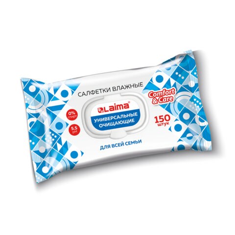 Салфетки влажные 150 шт., УНИВЕРСАЛЬНЫЕ, с пластиковым клапаном, для всей семьи, LAIMA, 115227