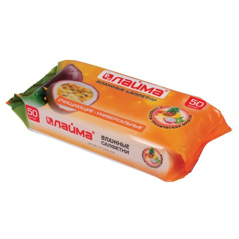 Салфетки влажные 50 шт., УНИВЕРСАЛЬНЫЕ, очищающие для всей семьи, тропические фрукты, LAIMA, 128076