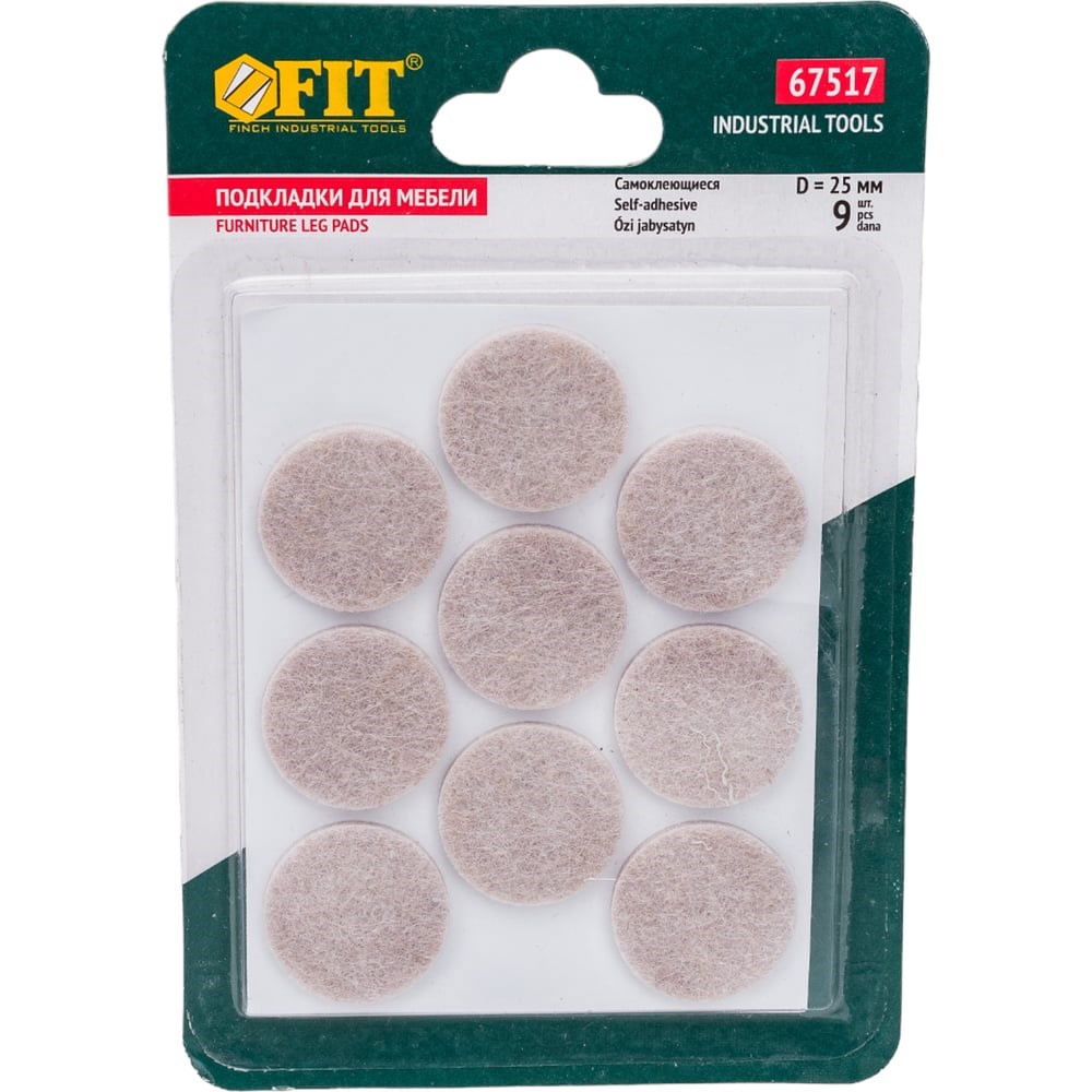 Самоклеящиеся подкладки для мебели FIT круглые 25 мм, 9 шт. войлок 67517 используются для защиты напольных покрытий от царапин.