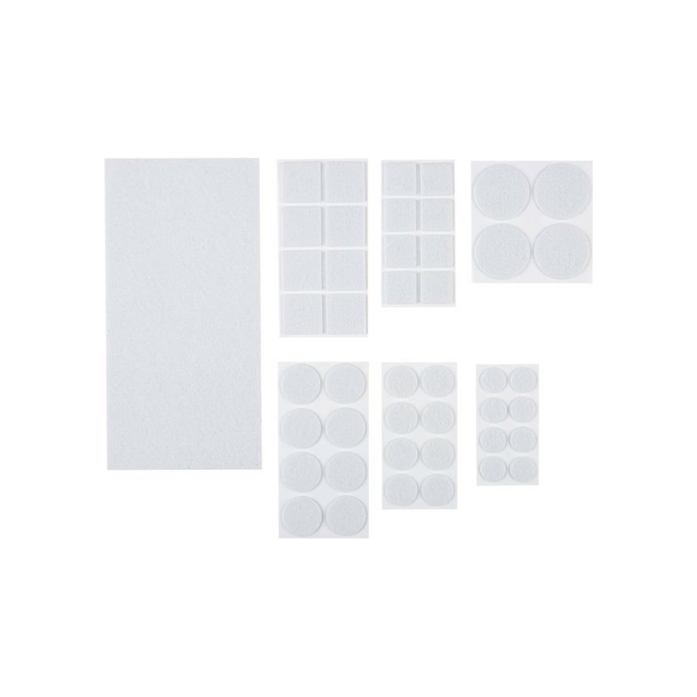 Включает семь типоразмеров изделий круглой и прямоугольной формы, которые наклеивают на ножки мебели для защиты поверхности полов от повреждений.