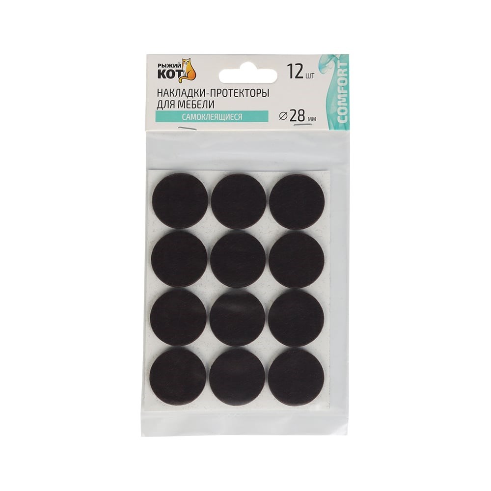 Самоклеящиеся накладки-протекторы для мебели Рыжий кот 12 шт., 28 мм, коричневый 105204 предназначены для защиты полов из любого покрытия от сколов, царапин, потертостей, делает мебель более устойчивой.
