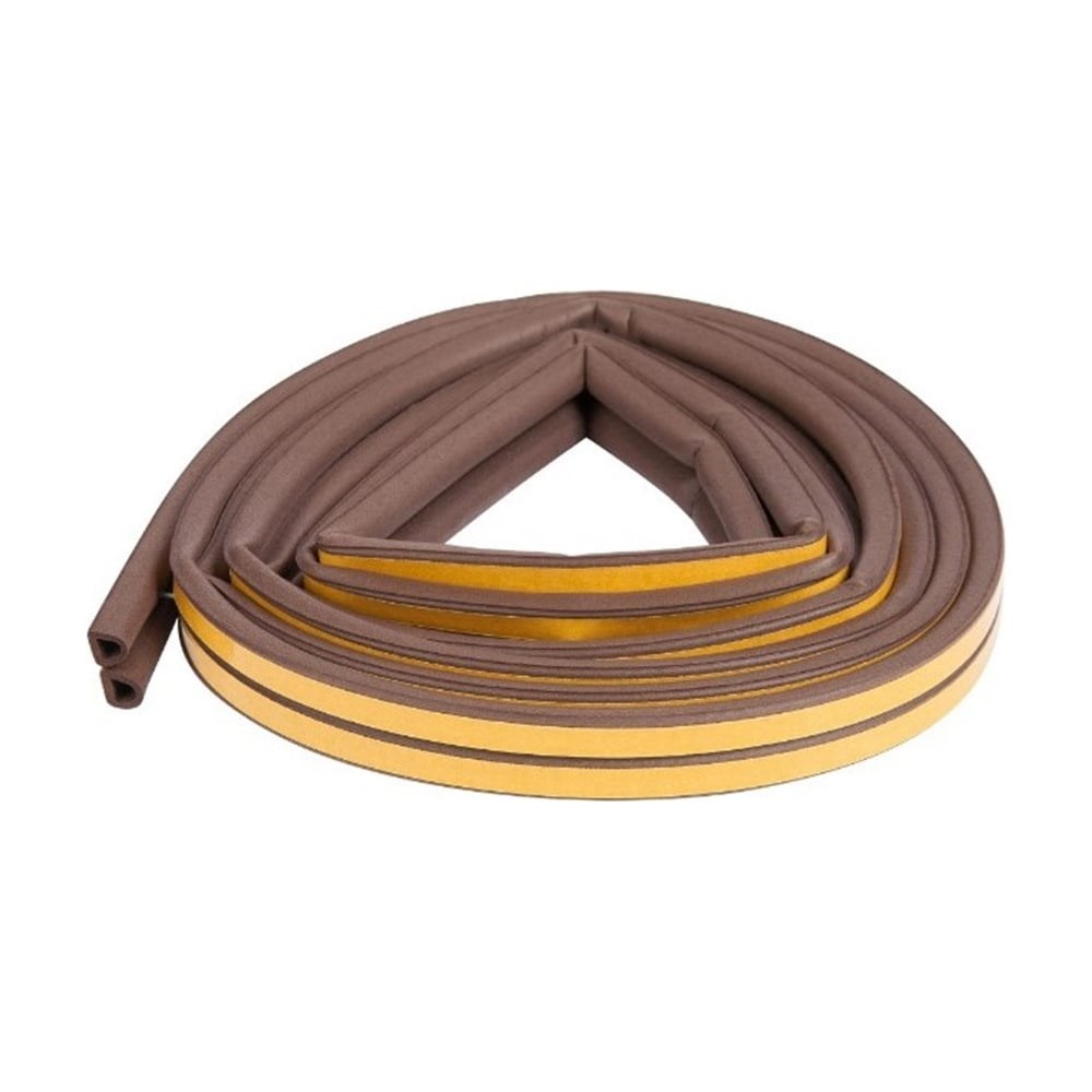 Самоклеящийся уплотнитель для дверей и окон ТДВ D профиль, 9х7,5 мм, коричневый 1502006 применяется для уплотнения всех типов оконных рам и дверных блоков. Изготовлен из EPDM с высоким содержанием каучука. В отличие от обычных резиновых уплотнителей, материал имеет более эластичную структуру, не подвержен разрушению при резком перепаде температур и воздействии ультрафиолета (солнечных лучей). Технические характеристики: Диапазон температуры эксплуатации: от -50 до +80 градусов. Общая длина: 6 м (3+3). Для щелей 3-7 мм. Срок службы более 10 лет. Приклеивается к любым поверхностям (дерево, металл, пластик). Не впитывает влагу. Салфетка входит в комплект для обезжиривания поверхности. Легко восстанавливает свою форму после сжатия, обладает значительным сопротивлением многократным деформациям (более 100 тыс. килоциклов без разрушения). Высокая степень адгезии клеевого слоя.