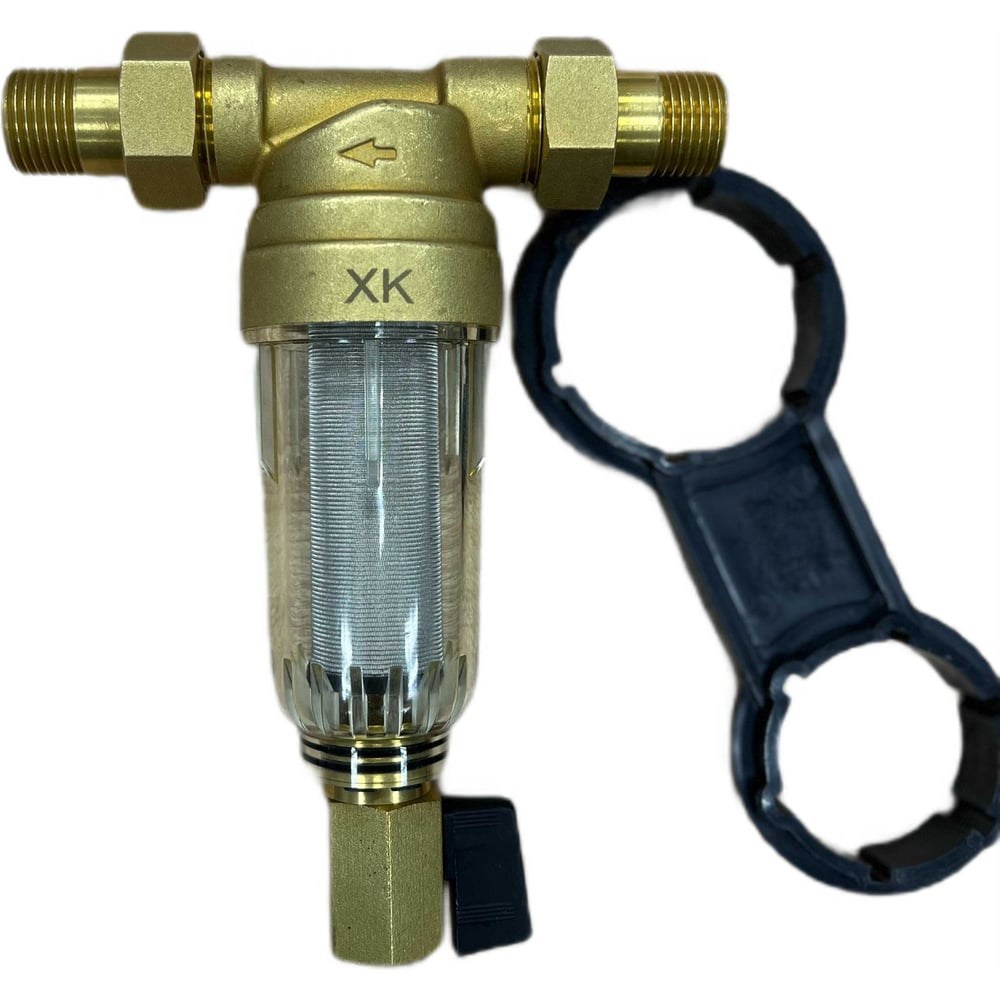 Самопромывной фильтр XK FH06-1/2C предназначен для механической очистки холодной воды от твердых частиц: песка, ржавчины, окалины, взвесей. Благодаря системе обратной промывки фильтр очищается без разборки — достаточно открыть сливной кран, чтобы удалить загрязнения из фильтрующего элемента.Модель оснащена прозрачной ударопрочной колбой, которая позволяет контролировать степень загрязнения и своевременно выполнять обслуживание.ПреимуществаСамопромывной механизм — обслуживание без снятия фильтра.Предназначен для холодной воды.Прозрачная колба для удобного контроля.Латунные элементы для надежности и долговечности.Тонкость фильтрации 100 мкм — оптимально для защиты бытовых систем.Компактный размер — подходит для небольших узлов ввода.Технические характеристикиМодель: FH06-1/2CБренд: XKНазначение: холодная водаДиаметр подключения: DN15 (1/2")Тип фильтра: самопромывной, механическийТонкость фильтрации: 100 мкмМатериал колбы: прозрачный ударопрочный пластикМатериал корпуса: латуньОбласть примененияСистемы холодного водоснабженияЗащита сантехники, бытовых фильтров, счетчиков водыКвартиры, частные дома, дачиМонтаж в узлы ввода и перед оборудованием