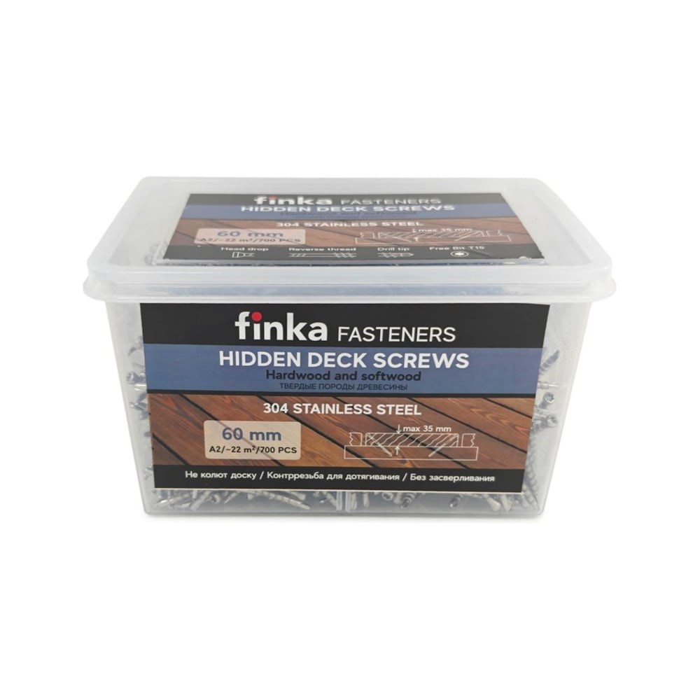 Саморезы для скрытого монтажа террас и фасадов с помощью инструмента Marksman Finka Hidden Wood Screws A2 60 мм, 700 шт.