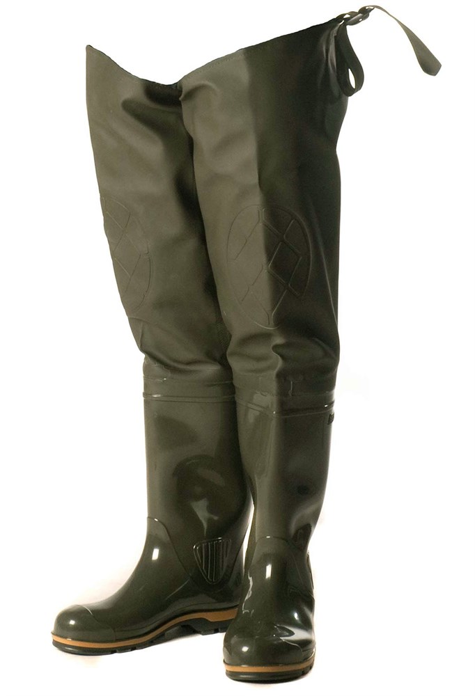 Классическая модель рыбацких сапог. Плотная рифленая подошва. Текстильный верх из водонепроницаемой ПВХ-ткани (винитол) крепится к базовому сапогу на современном итальянском оборудовании при помощи сварки током высокой частоты. 100% водонепроницаемость.