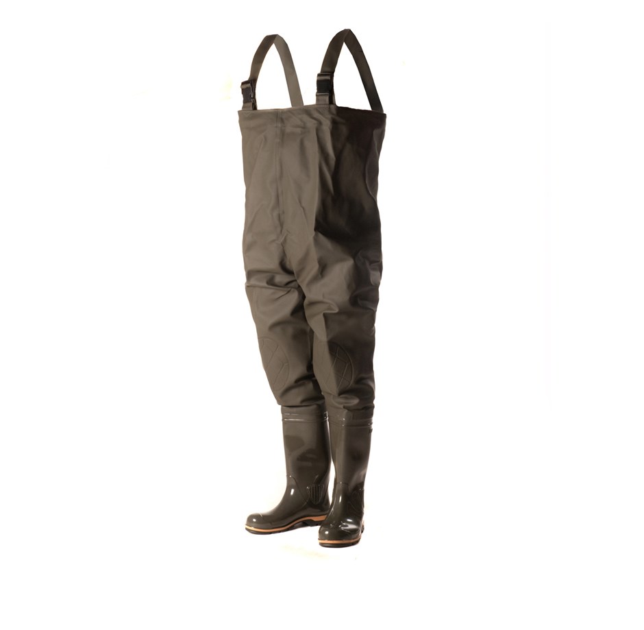 Классический рыбацкий полукомбинезон. Верх - из легкой водонепроницаемой ПВХ-ткани (винитол) крепится к базовому сапогу из ПВХ на современном итальянском оборудовании при помощи сварки током высокой частоты. Это гарантирует абсолютную водонепроницаемость.