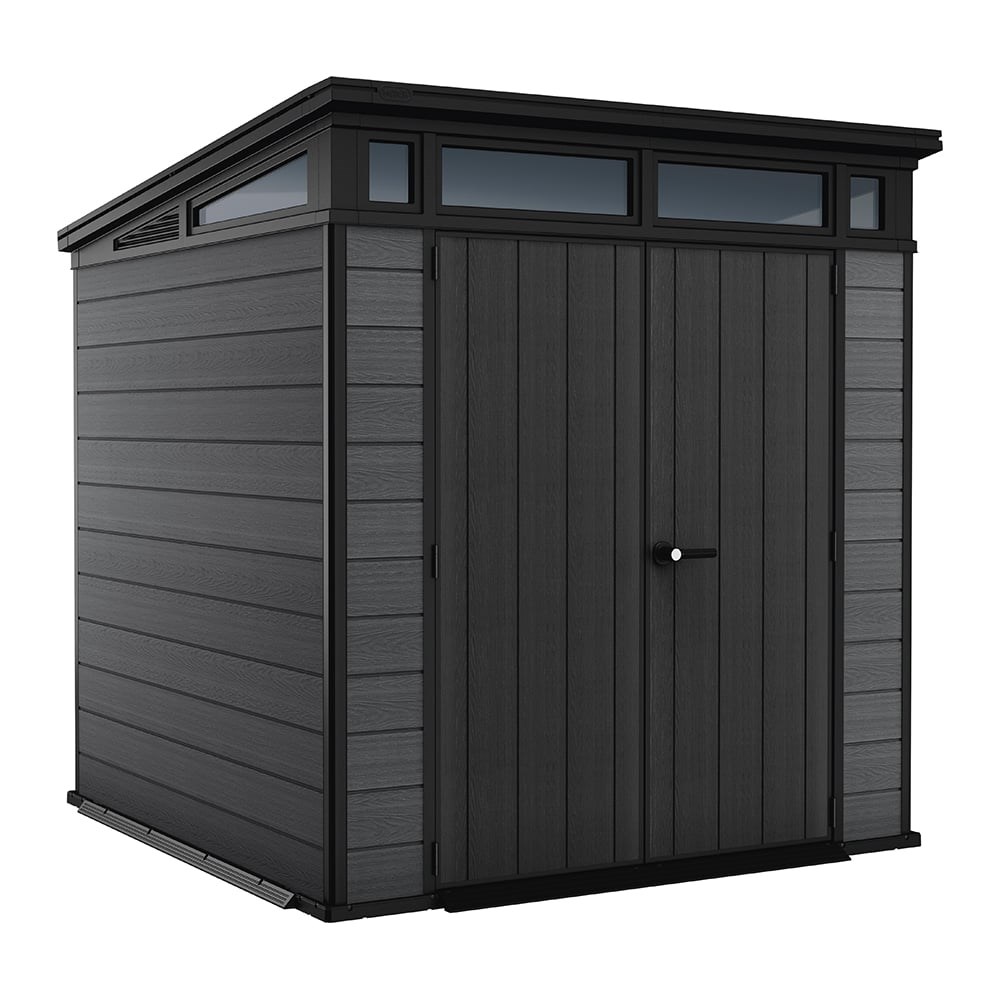 Cortina 7x7 - Хозяйственный домик Cortina современен с любой точки зрения. Односкатная крыша, встроенные с трех сторон кровельные фонари и простые двустворчатые двери подчеркивают его оригинальный современный характер. Двухслойные стены изготовлены из очень прочного инновационного композитного материала "EvotechTM". Фактура поверхности поразительно отражает натуральный древесный рисунок. Этот необычайно прочный домик для инструментов устойчив к погодным условиям и ультрафиолетовым лучам и не нуждается в уходе - он не ржавеет, не гниет и не шелушится. Домик легко содержать в чистоте. Внимание! Сарай рекомендуется ставить на подготовленное основание. Это может быть бетонированная, асфальтированная или выложенная плиткой (брусчатка/декоративный камень) площадка. Основание должно быть ровное по высоте. Площадка не должна иметь уклон. Внимание! Нельзя ставить сарай на плиточный фундамент, на столбики или кирпичи, на гравий. Внимание! Сборку продукции производить при температуре выше +5°С.