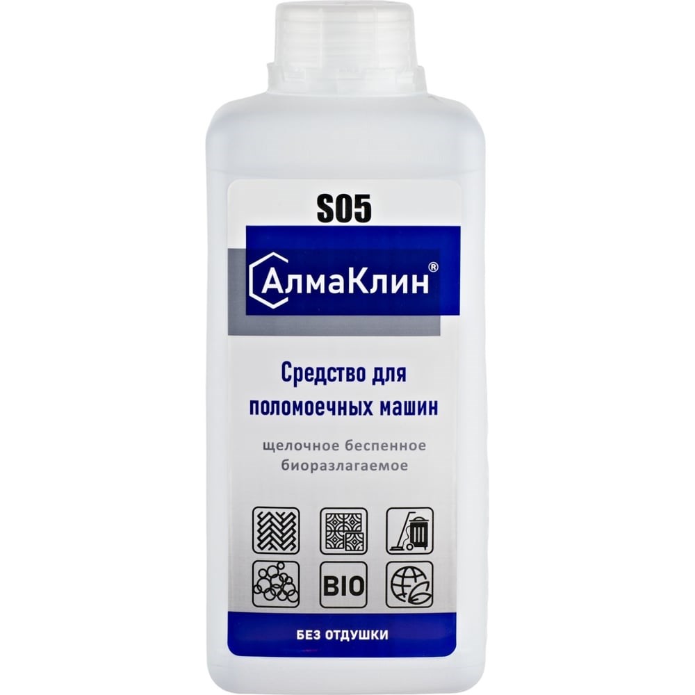Щелочное моющее средство для поломоечных машин ООО "БАЗОВАЯ ДЕЗИНФЕКЦИЯ" АлмаКлин S05, 1 л, крышка S05-1Л предназначено для удаления застарелых загрязнений. Эффективно очищает любые твердые поверхности, за исключением необработанных деревянных покрытий. Можно применять в поломоечных машинах различных типов.
