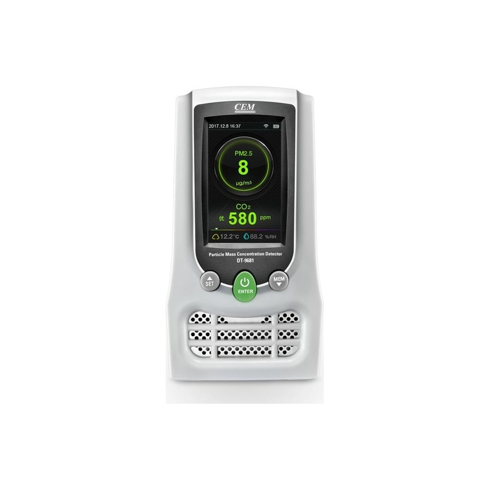 Счётчик пылевых частиц СЕМ DT-9680 482483 предназначен для определения содержания в воздухе твердых частиц РМ2.5, РМ10, летучих органических соединений, формальдегида и концентрацию углекислого газа. Удобство использования. Данная модель оснащена цветным TFT-дисплеем, отображающим результаты измерений и данные из памяти. Понятное управление обеспечивает простое использование. Питание осуществляется от встроенного аккумулятора. Функциональность: измерение содержания формальдегидов НСНО; измерение содержания соединений TVOC; измерение температуры и влажности; измерение массовой концентрации РМ 2.5/РМ10/НСНО.