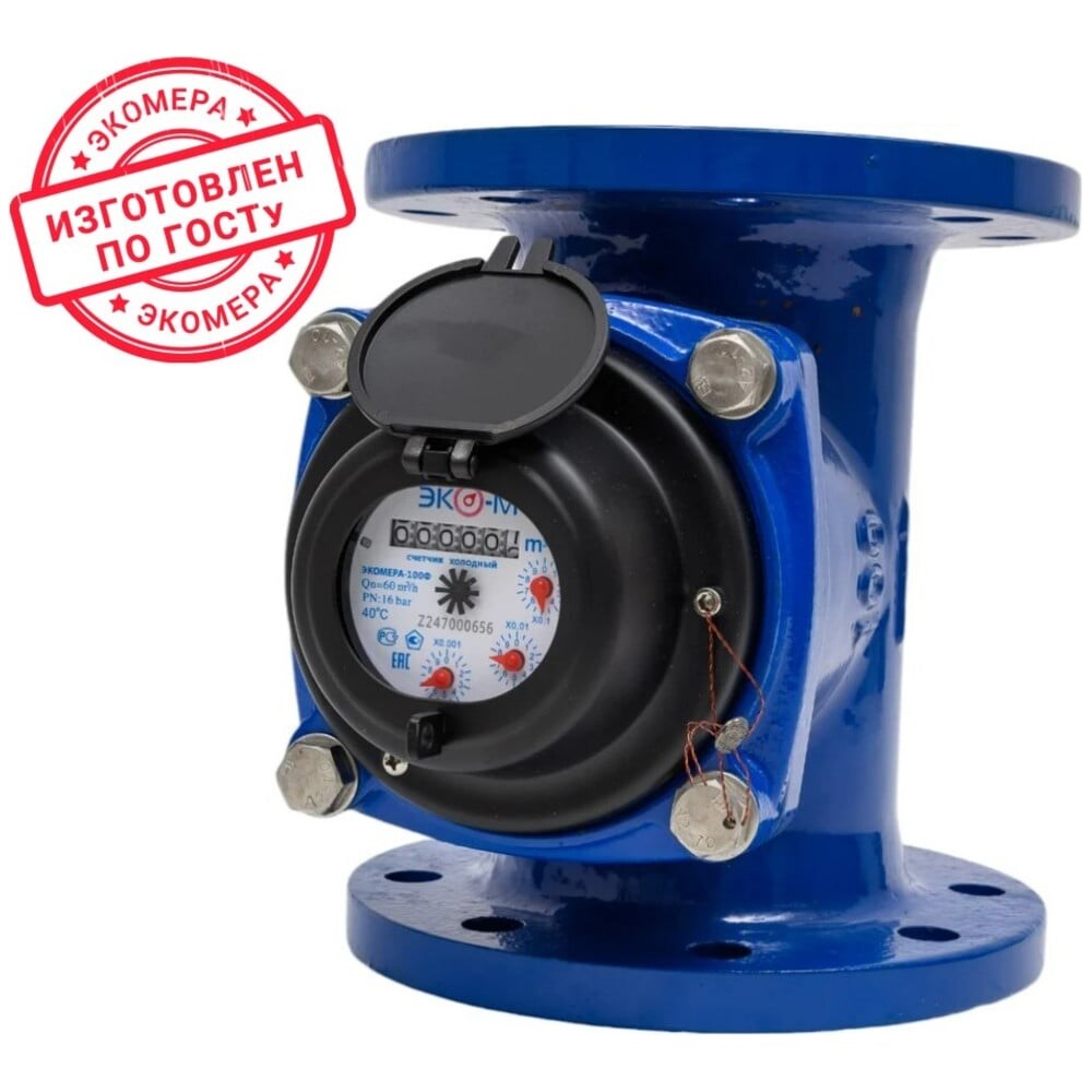 Счетчик воды ЭКО-М ЭКОМЕРА-100Ф холодный (антимагнитный, Ду100, L245) Э-Ф100-Х предназначены для измерения объема холодной питьевой воды при температуре от 5 °С до 40°С по СанПиН 2.1.4.1074-01 и сетевой воды, протекающей по трубопроводу и рабочем давлении в водопроводной сети не более 1,0МПа(10 кгс/см2).Счетчики воды турбинные состоят из чугунного корпуса с фланцевыми соединениями и взаимозаменяемого измерительного механизма (измерительная вставка с турбиной, крышка корпуса, индикаторное устройство с магнитной муфтой и счетным механизмом, смонтированные вместе).Внимание! Дату поверки счетчика можно узнать на сайте РСТ Метрология.Все приборы поверены и внесены в АРШИН.