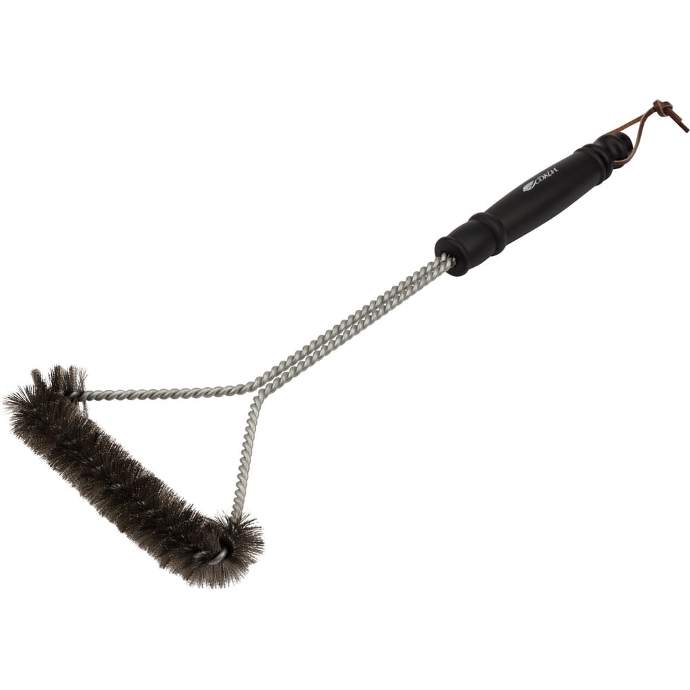 Щетка для грилей серии Комфорт предназначена для очищения грилей, мангалов и решеток из нержавеющей стали, чугуна, хрома или фарфоровой эмали. Длинная рукоятка (15 см) из экологически чистой термопластичной резины не выскальзывает из рук. Жесткая металлическая щетина эффективно удаляет остатки пригоревшей пищи и другие сильные загрязнения. Способна вычищать мелкий сор и грязь даже из труднодоступных мест. Аксессуар выполнен из прочной и экологичной нержавеющей стали, благодаря чему выдерживает большие перепады температур, устойчив к коррозии.