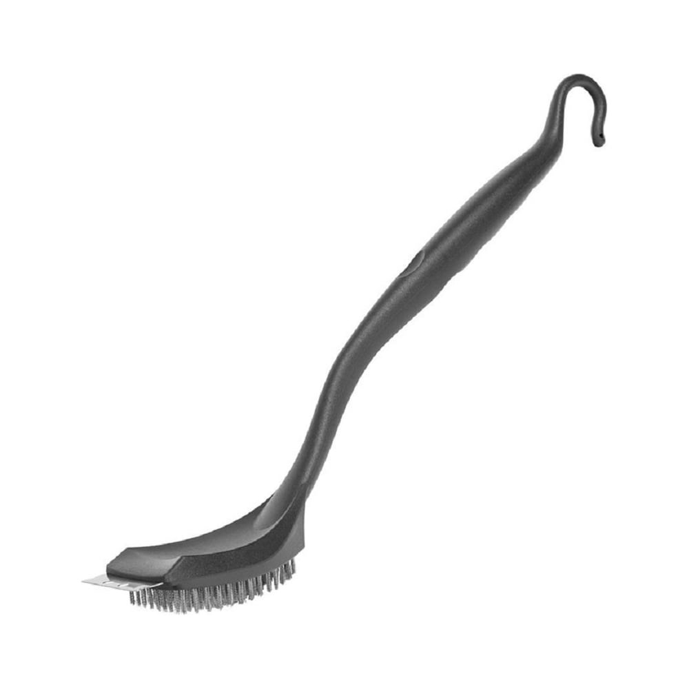 Не хотите есть стейки с привкусом вчерашней рыбы? Тогда приобретите щетку для чистки гриля и используйте ее после каждого приготовления пищи! Щетина щетки выполнена из нержавеющей стали и прочно закреплена на основании, поэтому точно не выпадет и не попадет в еду. А еще она очищает и не травмирует эмаль на решетке, продлевая срок службы гриля. Скребок на задней поверхности позволяет эффективно убирать пригоревшие ингредиенты и нагар. Длинная ручка дает возможность очистить даже труднодоступные места гриля. Чтобы щетку было удобно подвесить, на ней предусмотрен специальный крючок.