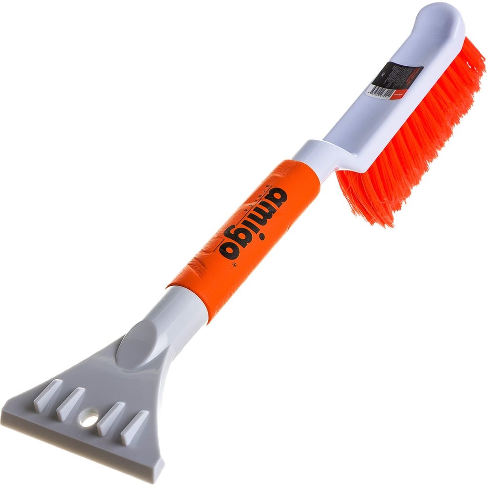 Щетка-сметка для уборки снега AMIGO 71541 подходит для комфортной уборки снега: морозоустойчивый пластик, софт ручка для комфортной работы в холодную погоду, распушенная щетина, скребок для удаления льда.
