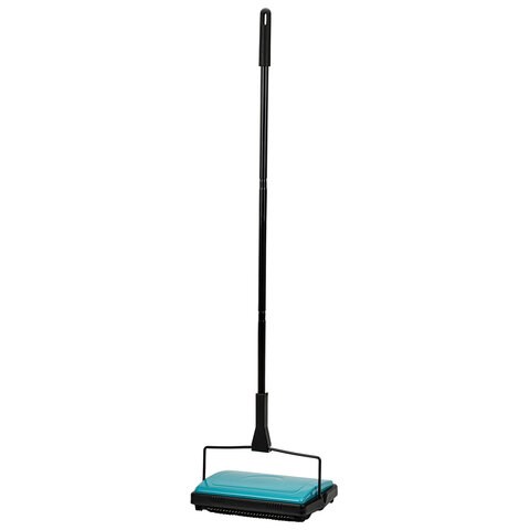 Щетка-веник-пылесос механическая, металлическая, плотная щетина на роликах, чёрно-бирюзовый, разборный, колорбокс, DASWERK, 608948