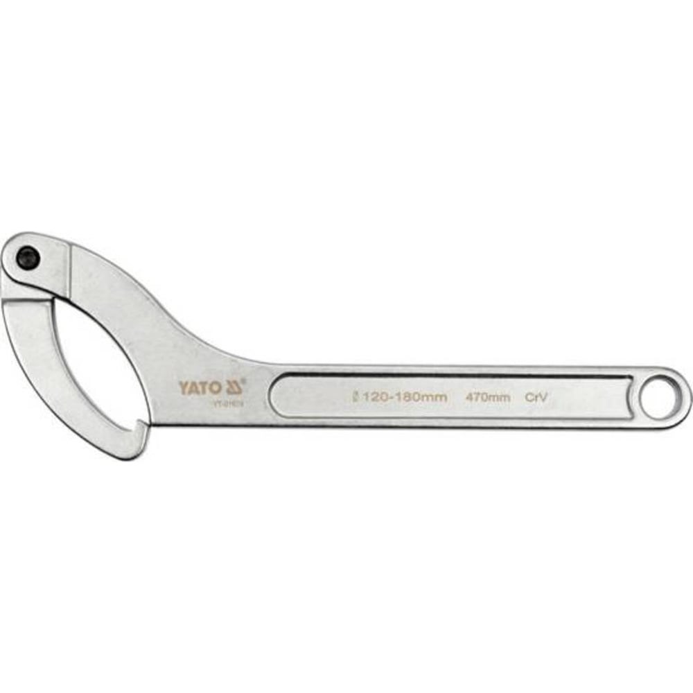 Сегментный шарнирный ключ YATO 120-180 мм, с крючком YT-01674 используется для эффективной работы с крепежом различного типа. Благодаря сегментному захвату значительно повышается качество вращения и уменьшаются повреждения крепежа. Имеется отверстие для подвешивания.