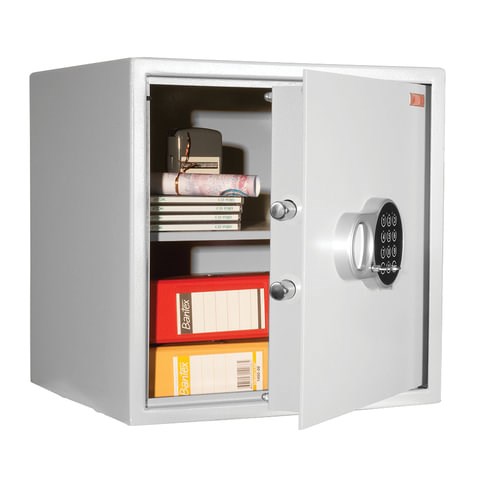 На сейф установлен электронный кодовый замок PLS-3 (Россия) со световой и звуковой индикацией, позволяющий запрограммировать свой уникальный код (от 4 до 8 знаков). В комплект входит аварийный мастер-ключ на случай, если забыли код или вышли из строя элементы питания. Подробная инструкция по эксплуатации замка в комплекте.