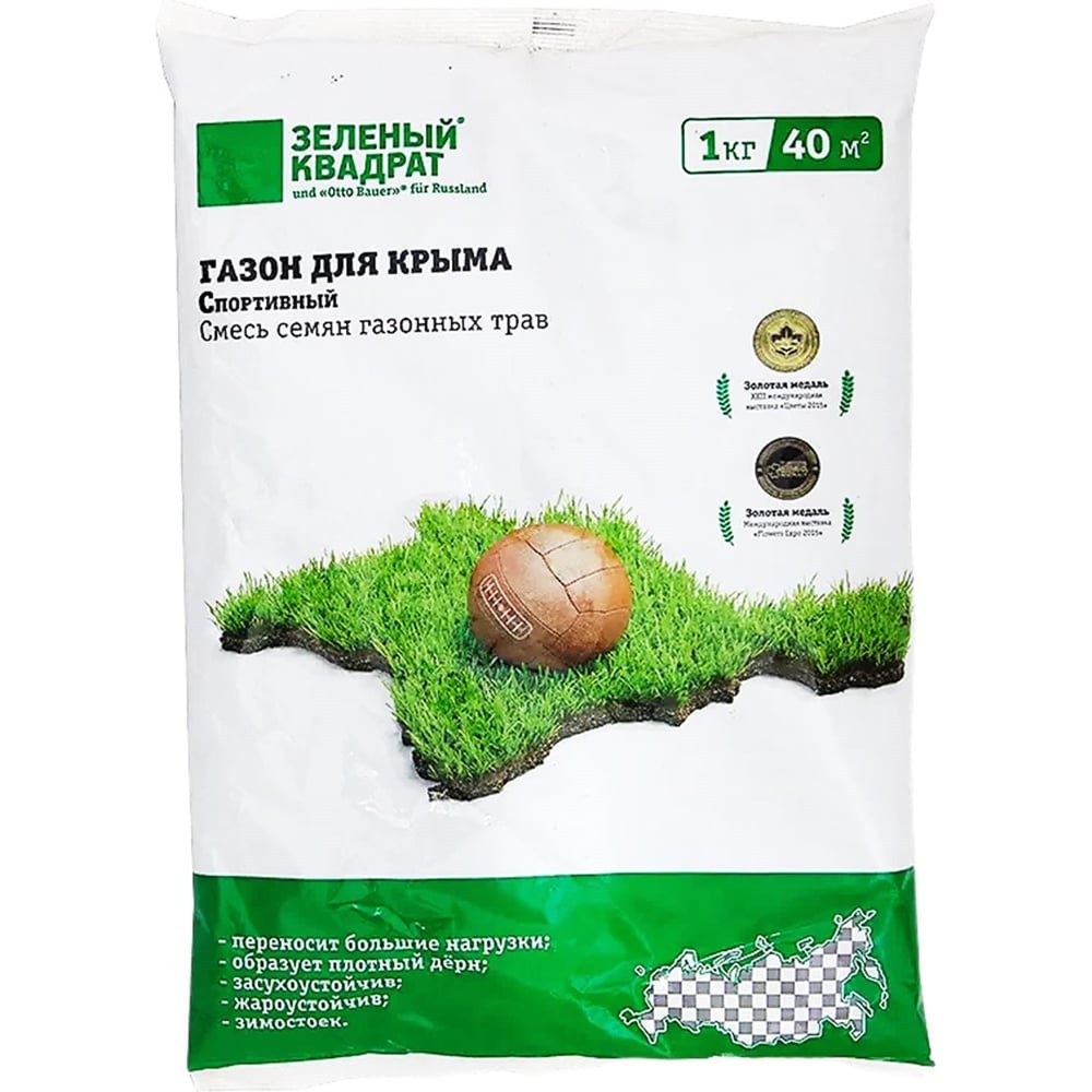 Семена газона Зеленый Квадрат Спортивный газон для Крыма 1 кг 4607160332598 – смесь трав для создания густого износостойкого газона, подходящего для условий Республики Крым. Состав: Тимофеевка луговая Ленинградская 25% Овсяница луговая Свердловская 25% Овсяница тростниковая Трубадикс 10% Овсяница красная красная Диппер 10% Райграс многолетний Юбилей 10% Райграс итальянский Рапид 10% Мятлик луговой Цептор 10%
