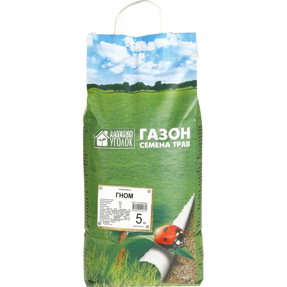 Семена газона Зеленый уголок Травосмесь Гном 5 кг 16583 - смесь газонных трав, состоящая из низкорастущих сортов, не требующих частой стрижки и тщательного ухода. Является высококачественным неприхотливым зеленым покрытием парковых и садовых участков. Состав трав устойчив к неблагоприятным погодным и климатическим условиям. Отличается зимостойкостью и долголетием. Высота скашивания 6-8 см.