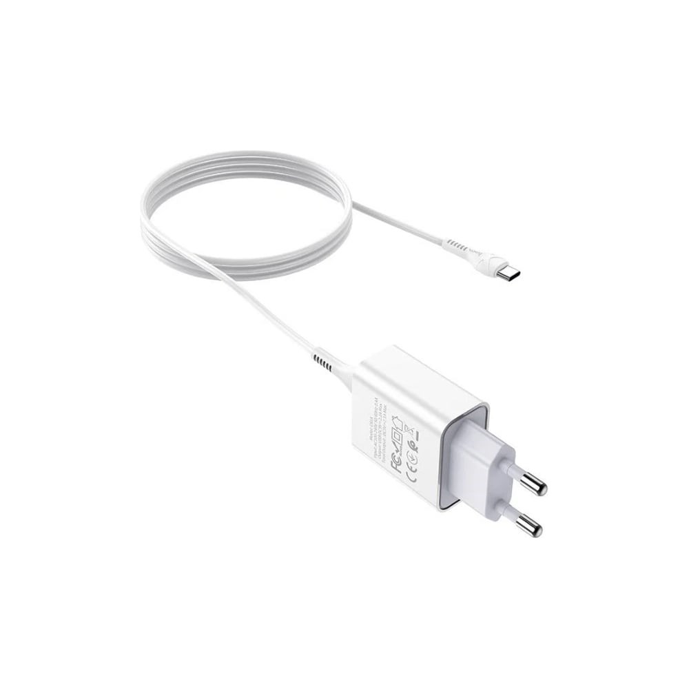 Сетевое зарядное устройство Hoco C81A asombroso 1xusb, 2.1а + USB/Type-C 1м, белый, блистер, 6931474727961