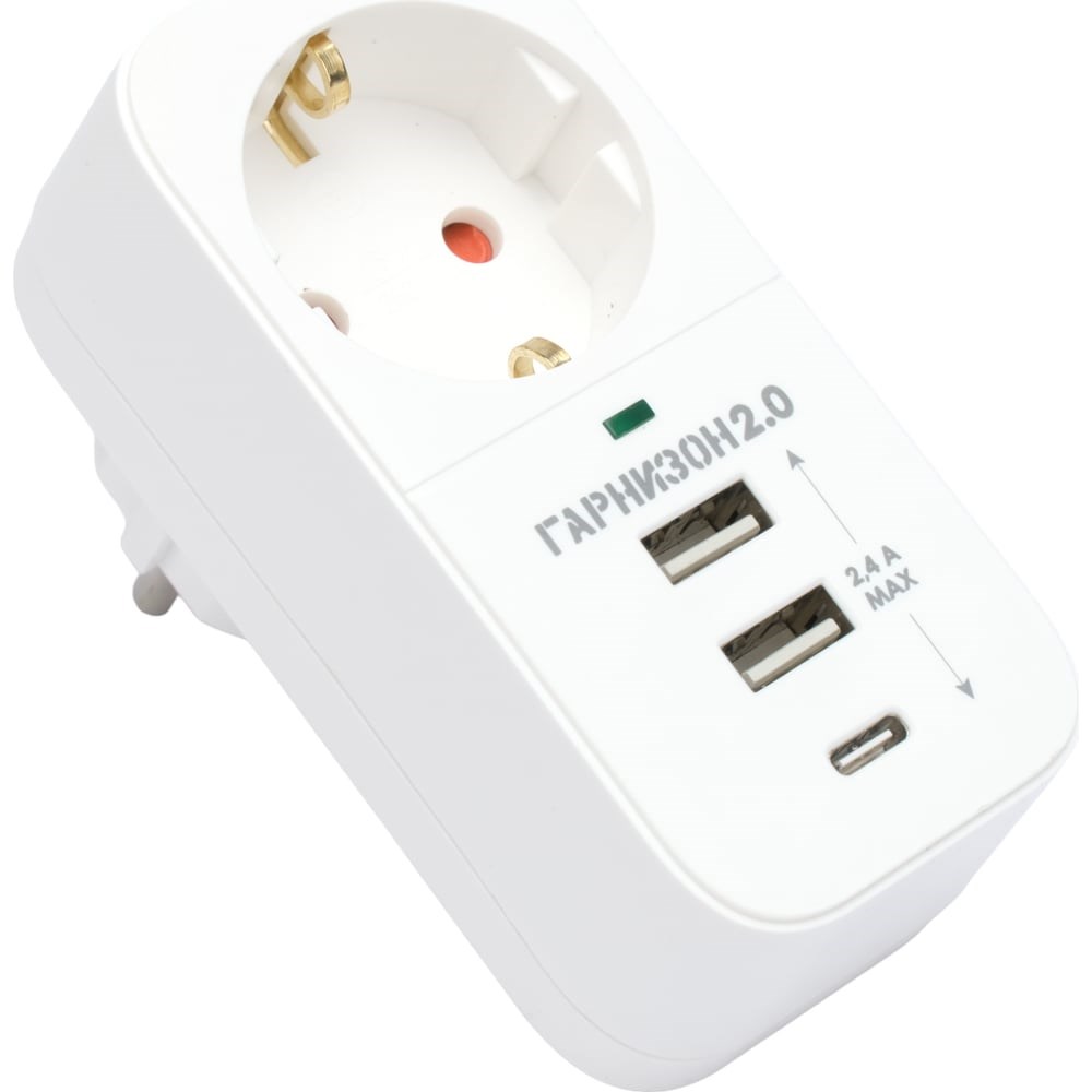 Сетевой фильтр Гарнизон 2.0 мультипорт розеточный, 1р, 16а, 1xtype-c, 2хusb, ур.защиты 2+, белый, SKT-1-CU2-W