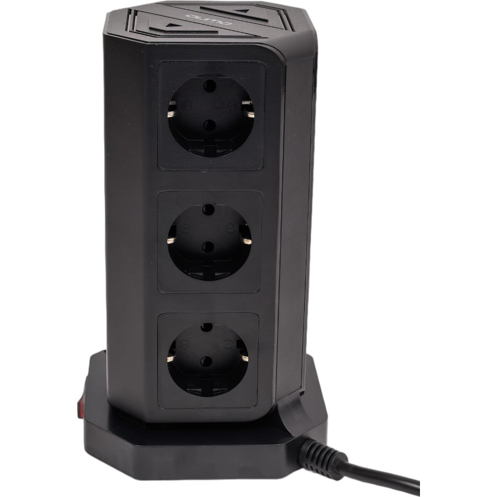Qumo Power Tower Pro PD – настоящие сетевые фильтры в форм-факторе “башни”, они оснащены евророзетками с заземлением, которые, в свою очередь, оснащены шторками безопасности. Для удобства использования в сетевой фильтр можно напрямую подключать устройства с разъемом USB-A (4 разъема с суммарной силой тока до 3,1А) и один разъем Type-C PD (до 18Вт). Помимо классического предохранителя в фильтр встроен блок фильтрации помех, что важно, при использовании наших фильтров с высокочувствительной аппаратурой (например с акустикой). Корпус фильтра, так же как и корпус вилки, выполнен из негорючего пластика, что делает эксплуатацию максимально безопасной.