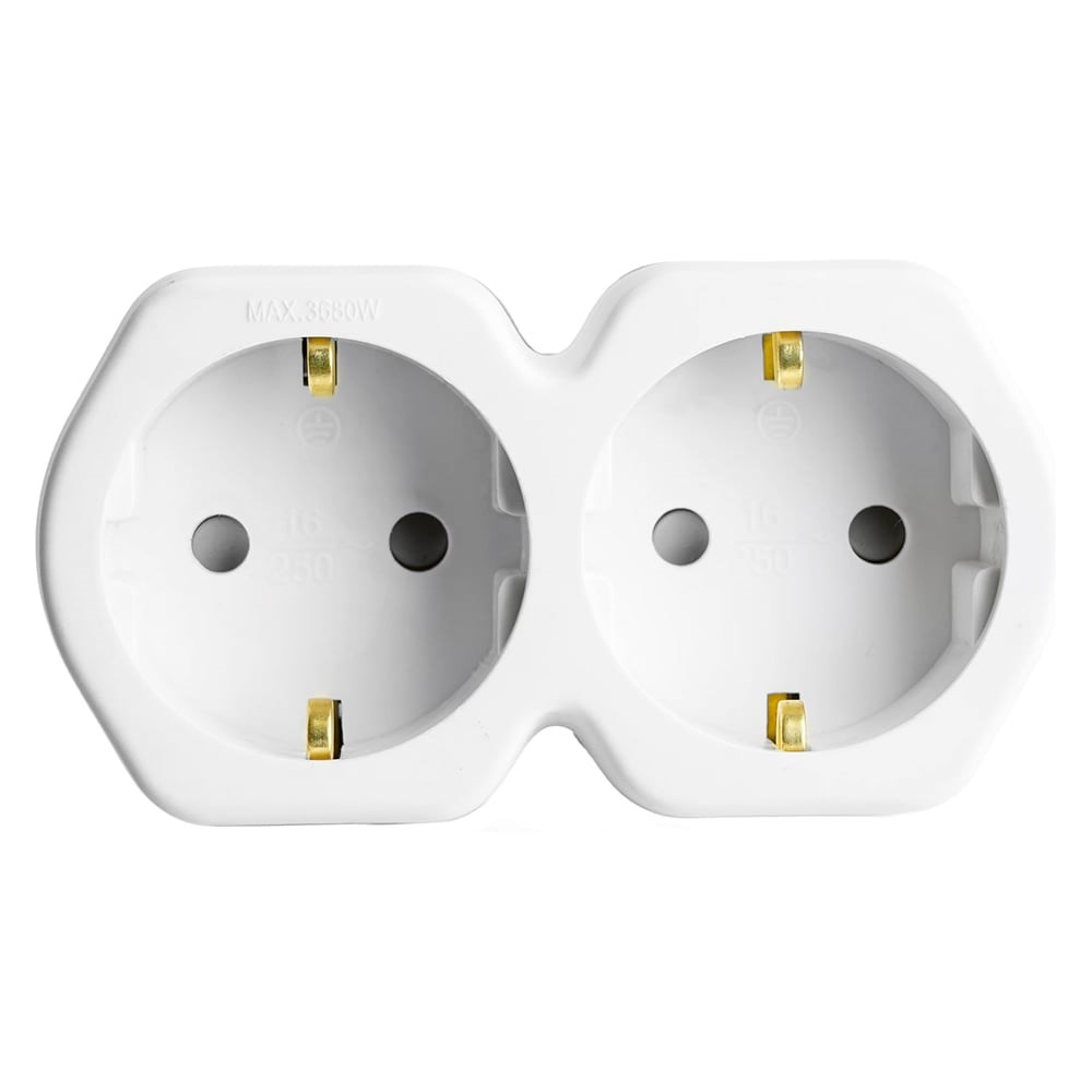 Сетевой разветвитель на два выхода STEKKER с заземляющим контактом, 250V, 16A, белый/серый 32870