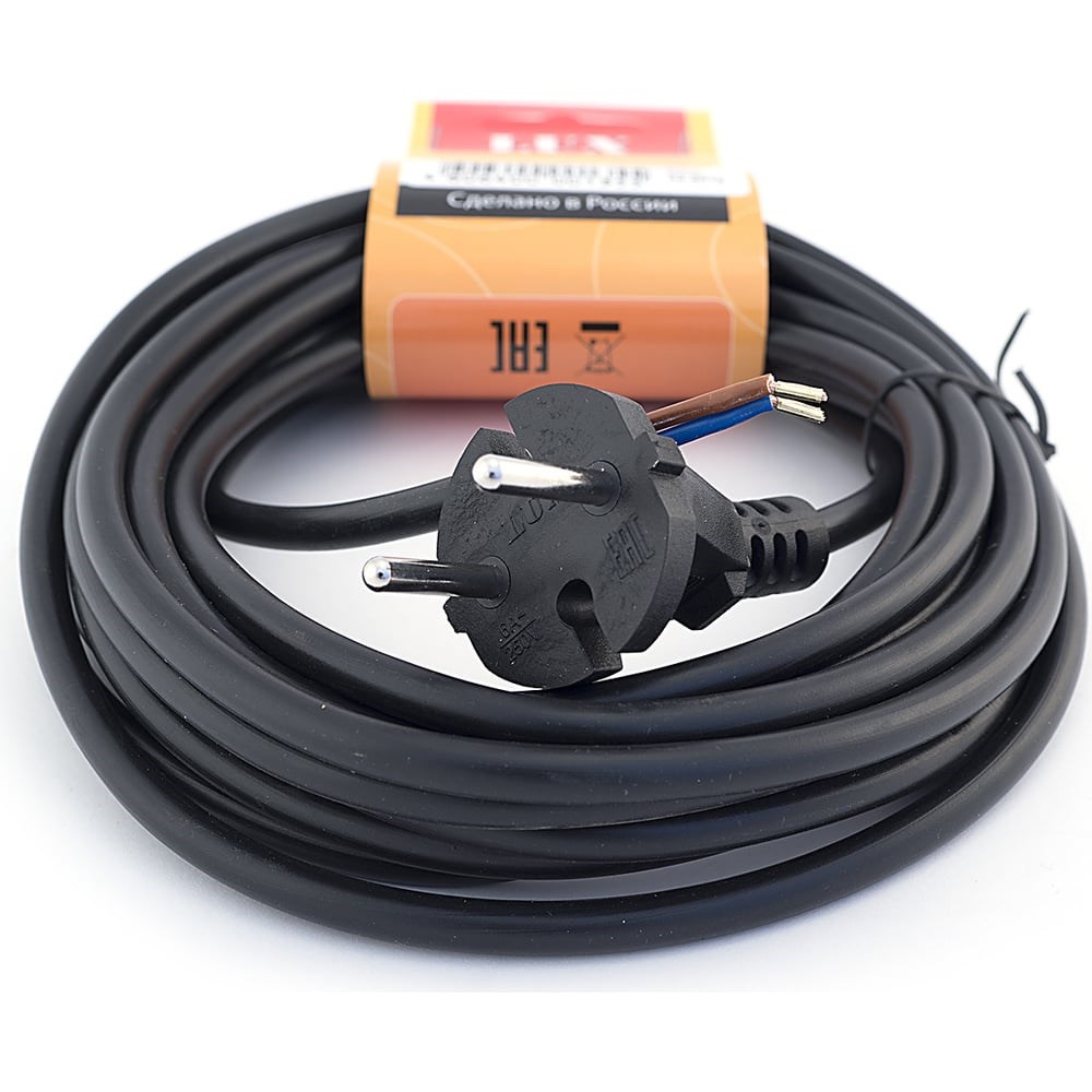 Сетевой шнур с вилкой Lux V2 ПВС 2x0.75 мм 3 м черный без заземления 4606400001348 используется для сборки с электрическими колодками и другими электрическими приборами, а так же для сборки удлинителей, переносок и тд.