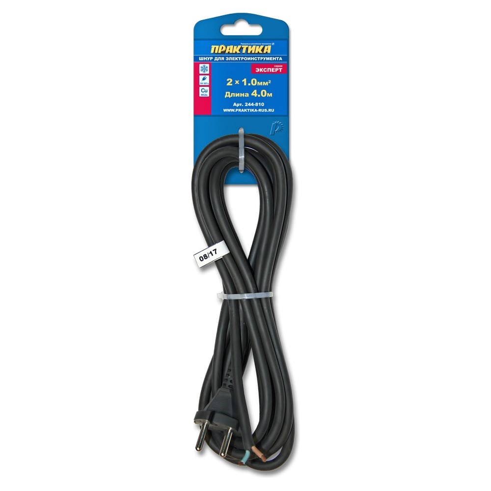 Сетевой шнур ПРАКТИКА ПГА-ВП 2х1,0 4 метра 244-810 представляет собой приспособление для подключения электроприборов к сети, а также замены вышедших из строя проводов. Шнур состоит из двух медных жил, изоляции и оболочки из негорючего термоэластопласта.