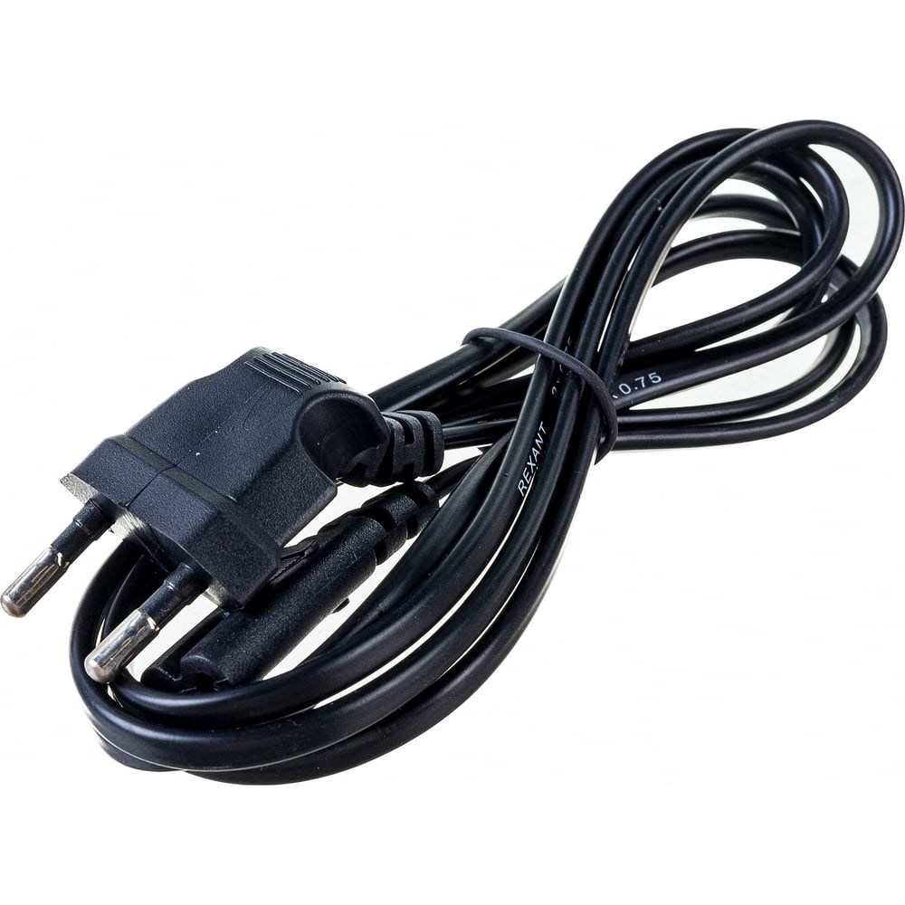 Шнур сетевой (угловая вилка) 2x0.75 мм² 1.5 м REXANT предназначен для подключения к сети переменного тока (AC) с напряжением 220 B аудио- и видеоаппаратуры, источников питания ноутбуков, игровых консолей и других приборов, имеющих штыревой сетевой разъем типа С8 (известен из-за его формы как «восьмерка»). Данный сетевой шнур (IEC cord) состоит из двухжильного провода с сечением жил 0.75 мм², с одной стороны угловой литой плоской вилки (евро) и с другой — литого гнездового неполяризованного разъема типа C7 (евроразьем). Основные характеристики: Тип вилки: евро угловая Тип розетки: IEC (С7) Максимальная сила тока: 2.5 А Изоляция жил и общая оболочка изготовлена из ПВХ Длина провода: 1.5 м Такой шнур удобен при подключении электрооборудования в труднодоступных местах, либо когда подключаемое устройство нужно разместить в непосредственной близости к чему-либо. Шнур имеет многопроволочные жилы, заключенные в эластичную двойную изоляцию из ПВХ, что делает его максимально гибким и увеличивает срок эксплуатации изделия.