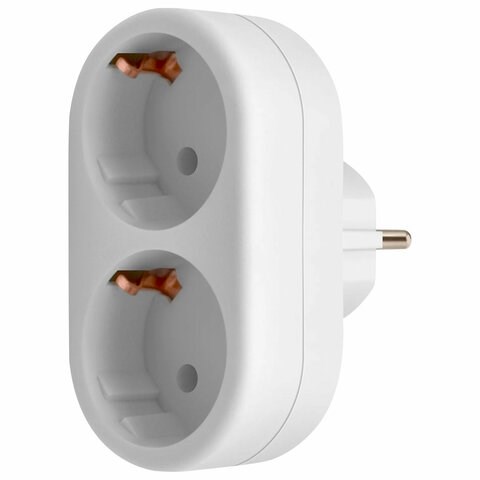 Разветвитель имеет 2 розетки с заземлением. Корпус изготовлен из негорючего пластика.